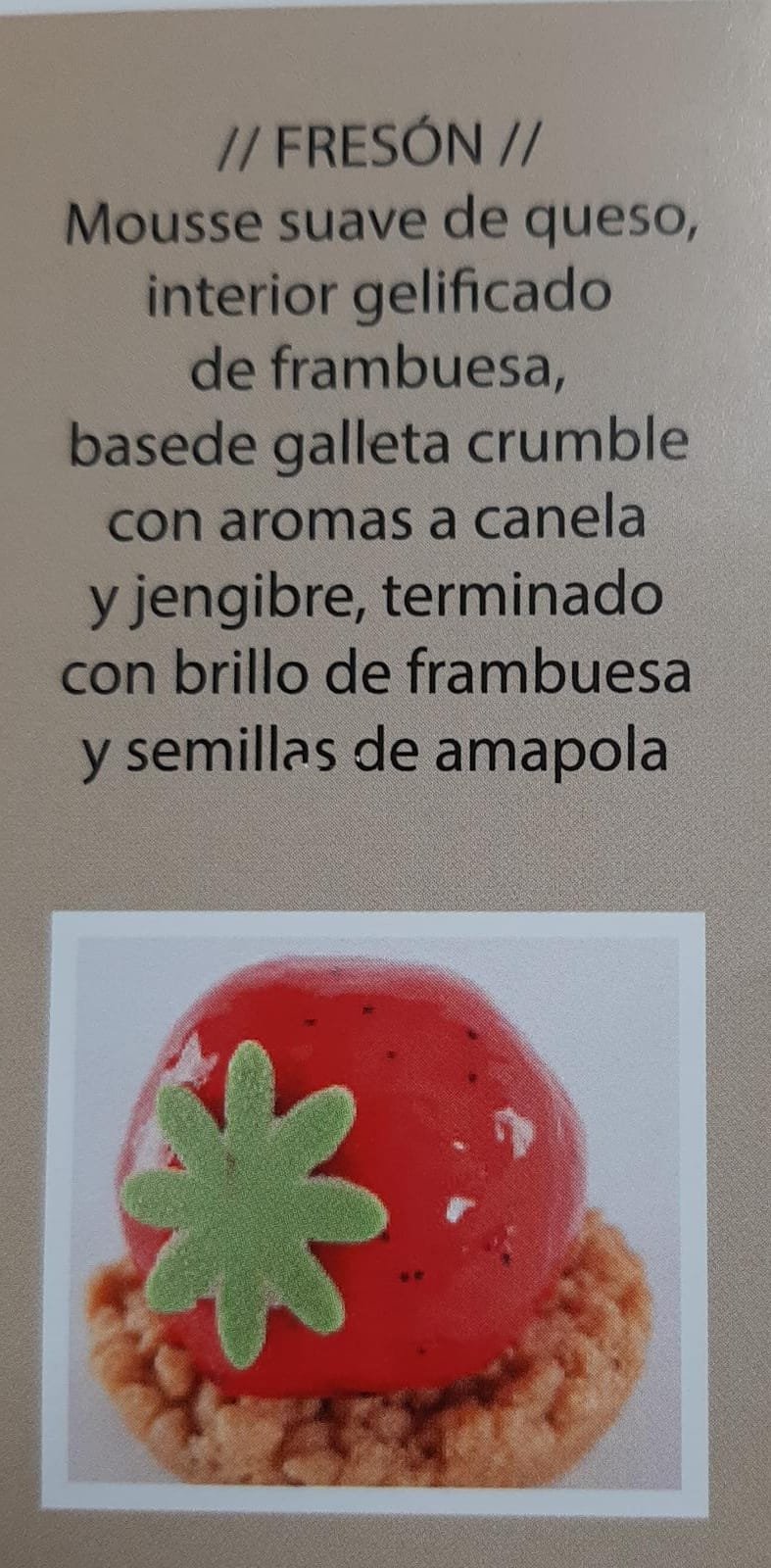 | Descripción | FORMATO: caja 15 und 100gr/und 1,88 €/und Mousse suave de queso con interior gelificado de frutos rojos, base clásica de galleta y mantequilla. |