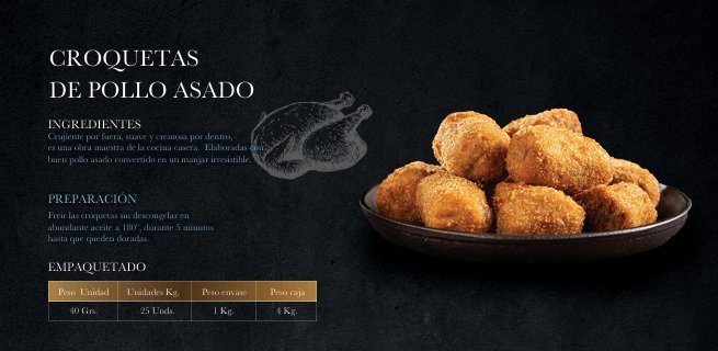 Crujiente por fuera, suave y cremosa por dentro, es una obra maestra de la cocina casera. Elaboradas con buen pollo asado convertido en un manjar irresistible. PREPARACIÓN Freir las croquetas sin descongelar en abundante aceite a 180º, durante 5 minutos hasta que queden doradas.